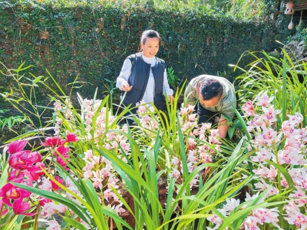“石頭也可以撿來賺錢,適當(dāng)加工后,配上蘭花,一盆可以賣兩三百元。”芒市合順文化傳播有限公司負(fù)責(zé)人鄭安鳳指著院內(nèi)盛開的蘭花說。鄭安鳳憑借文創(chuàng)產(chǎn)品、自制酸茶及培訓(xùn)學(xué)生,每年有幾十萬元的收入?!拔掖蛩阕プ∴l(xiāng)村旅游帶來的商機,在民宿上加大投入?!编嵃缠P說。