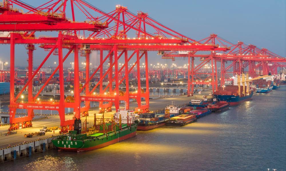 江蘇太倉港,萬里長江入???,一艘艘貨輪靠泊出發(fā)、晝夜不停。