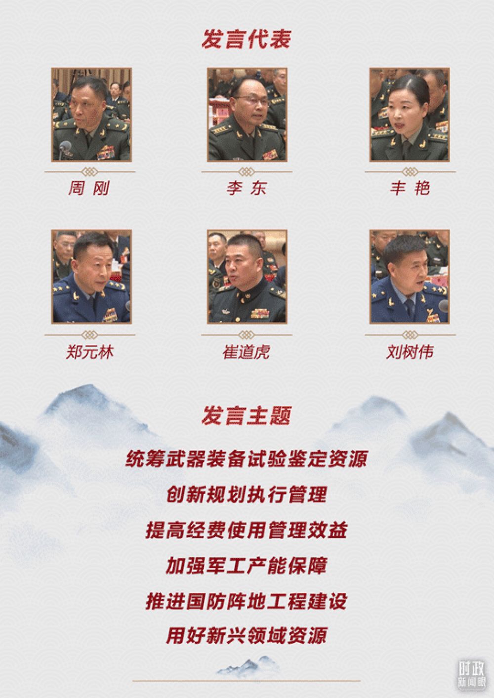 當(dāng)天,解放軍和武警部隊(duì)代表團(tuán)6位代表在會(huì)上先后發(fā)言,分別就統(tǒng)籌武器裝備試驗(yàn)鑒定資源、創(chuàng)新規(guī)劃執(zhí)行管理、提高經(jīng)費(fèi)使用管理效益、加強(qiáng)軍工產(chǎn)能保障、推進(jìn)國防陣地工程建設(shè)、用好新興領(lǐng)域資源等提出意見建議。