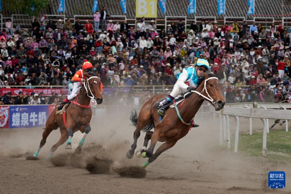 ??這是4月13日拍攝的三月街民族節(jié)賽馬大會(huì)現(xiàn)場(chǎng)。