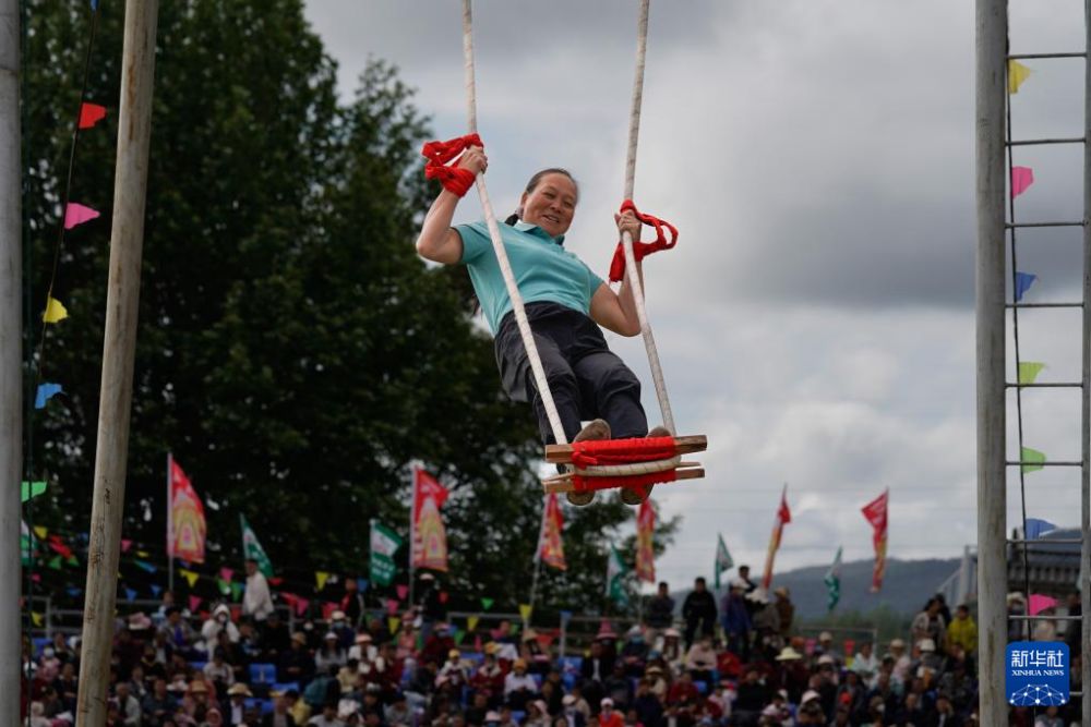 ??這是4月13日拍攝的三月街民族節(jié)秋千比賽現(xiàn)場(chǎng)。