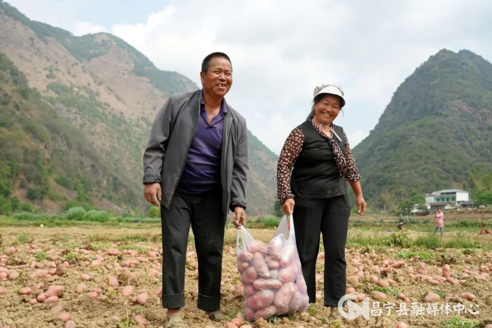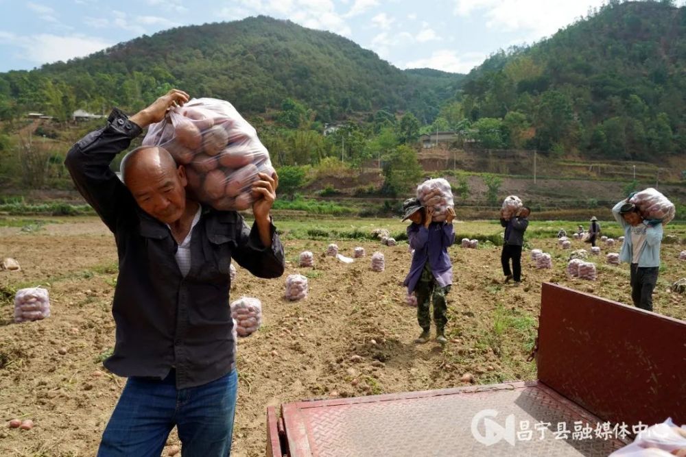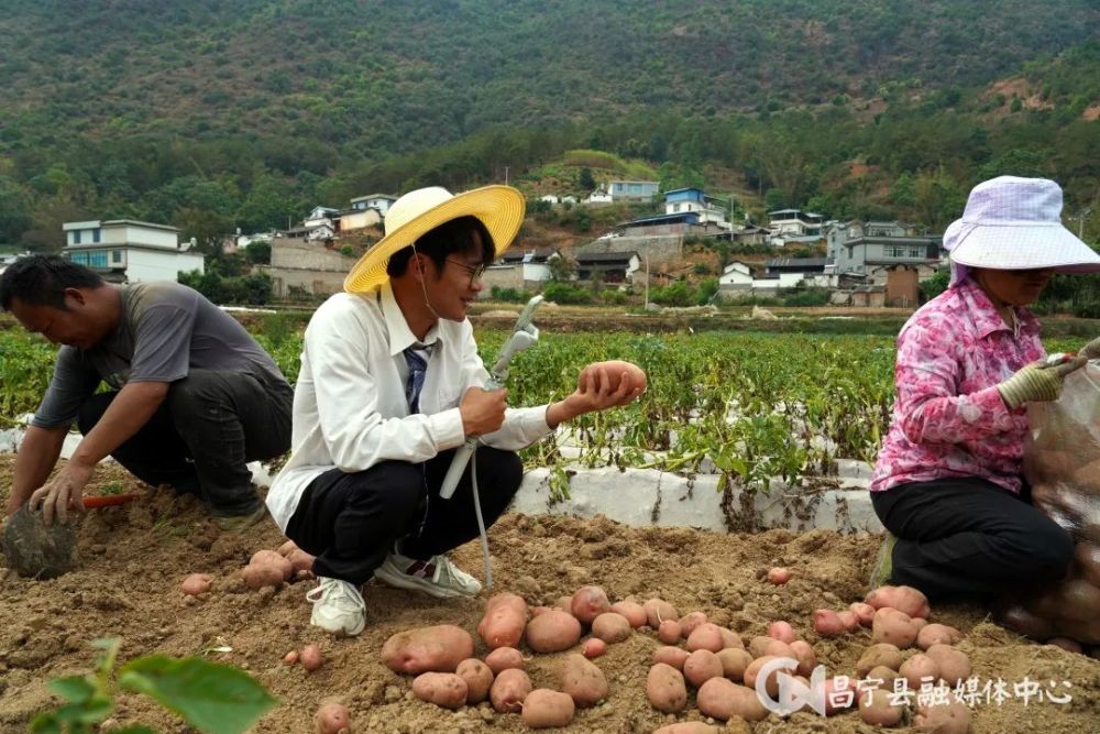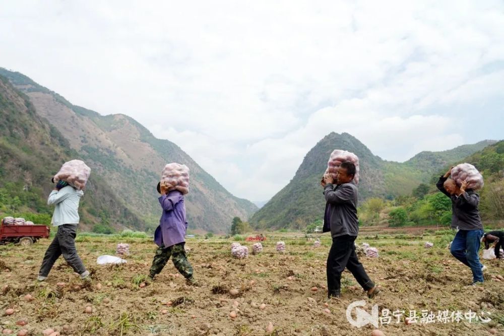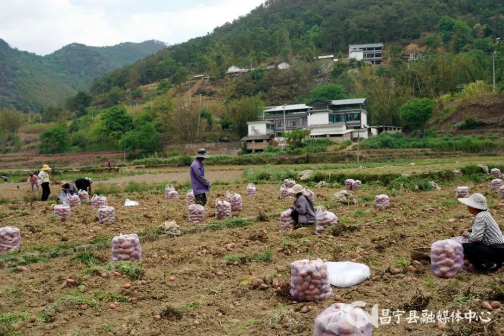 四月,在昌寧縣大田壩鎮(zhèn)大田壩村的田壩上,群眾正忙碌而有序地采收洋芋,田間地頭呈現(xiàn)出一片熱火朝天的繁忙景象。