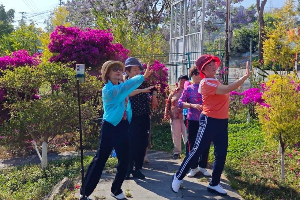 退休市民朱定英身著輕便的運(yùn)動裝,與幾位老友沿著環(huán)線步道漫步至三角梅公園。伴隨著悠揚(yáng)的樂曲,她們翩翩起舞,銀發(fā)在陽光下閃耀著動人的光芒?!白詮挠辛诉@條步道,我們經(jīng)常相約來這里游玩,大家聚在一起,有說有笑,別提多開心了?!敝於ㄓ⒛樕涎笠缰腋5男θ荨?/span>