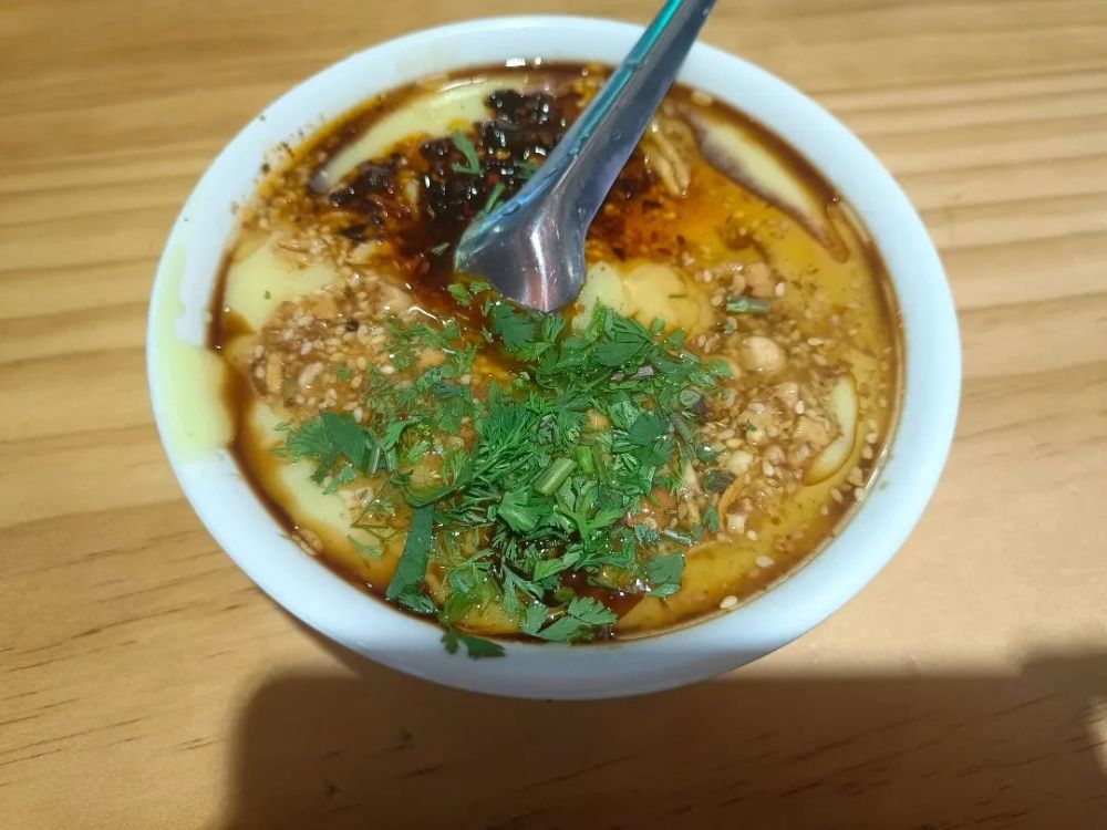 細(xì)膩的稀豆粉澆在爽滑的餌絲上