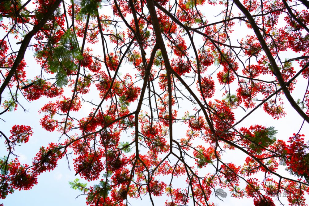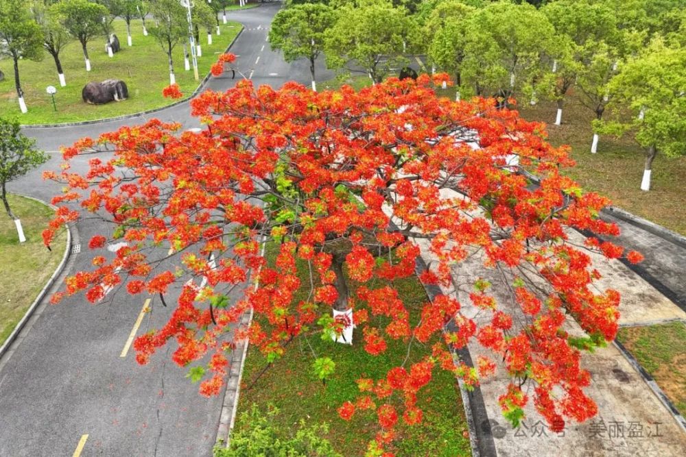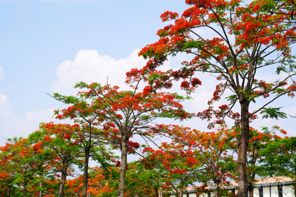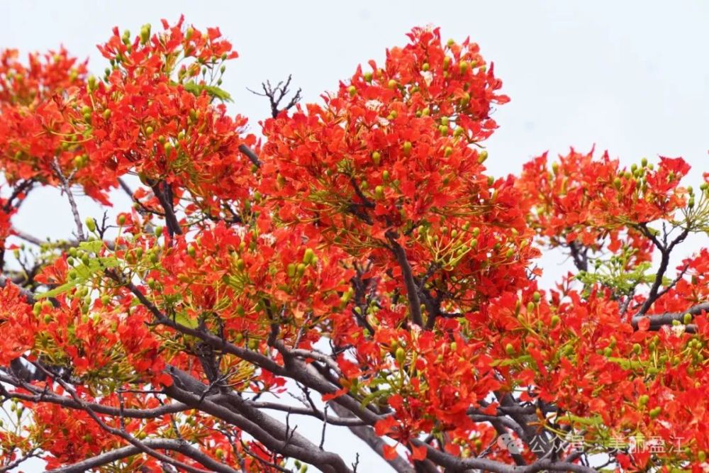 夏日的風(fēng)裹挾著溫?zé)崧舆^盈江,當(dāng)鳳凰花在枝頭悄然綻放,整座城便墜入一場盛大的“燃燒”,不是含蓄的胭脂色,而是潑灑在天際的赤焰,是太陽滴落人間的滾燙火種。