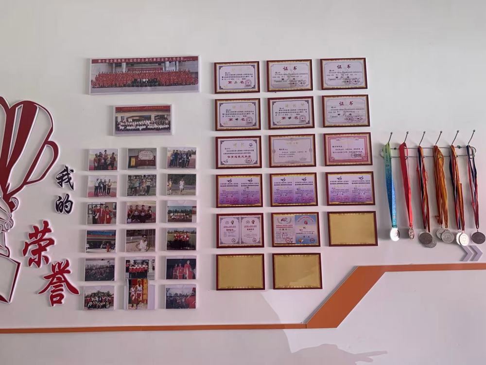 在他的小店中,整面的榮譽(yù)墻特別的顯眼,了解中得知,他曾經(jīng)是一名殘疾人運(yùn)動(dòng)員,曾前后多次參加國(guó)家級(jí)、省級(jí)殘疾人運(yùn)動(dòng)會(huì)、特殊奧林匹克運(yùn)動(dòng)會(huì),并以?xún)?yōu)異的成績(jī)斬獲眾多獎(jiǎng)項(xiàng),展現(xiàn)出了非凡的體育天賦和拼搏精神。他向我們展示著當(dāng)時(shí)的獎(jiǎng)?wù)虏⒋蜃指嬖V我們:“我最自豪的是參加全國(guó)第七屆殘疾人運(yùn)動(dòng)會(huì)T60級(jí)全程馬拉松項(xiàng)目,當(dāng)時(shí)獲男子組第八名,內(nèi)心特別激動(dòng),在全國(guó)的賽事上,高手如云,自己也可以不斷突破、超越自我,很有成就感,覺(jué)得只要努力就一切都有可能!”