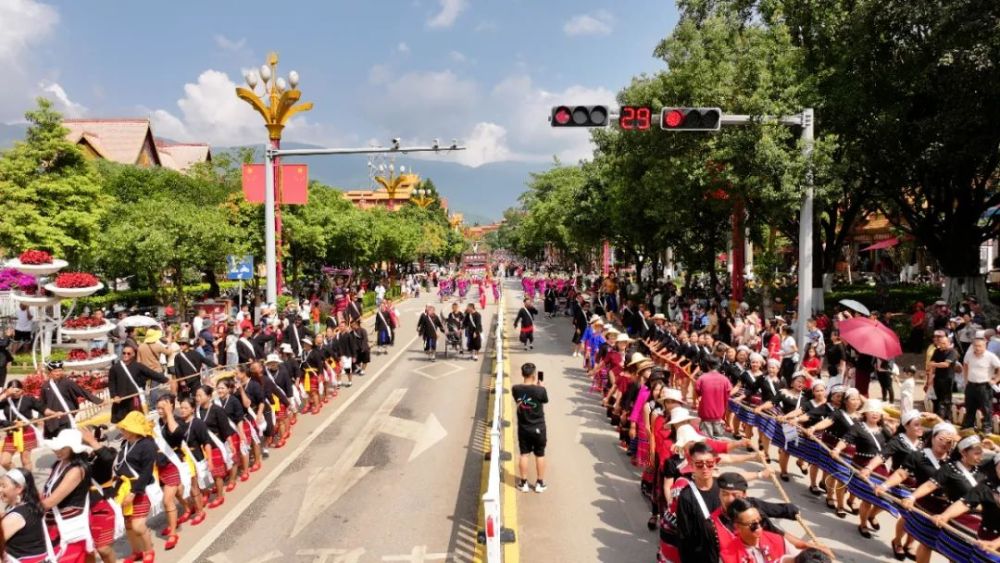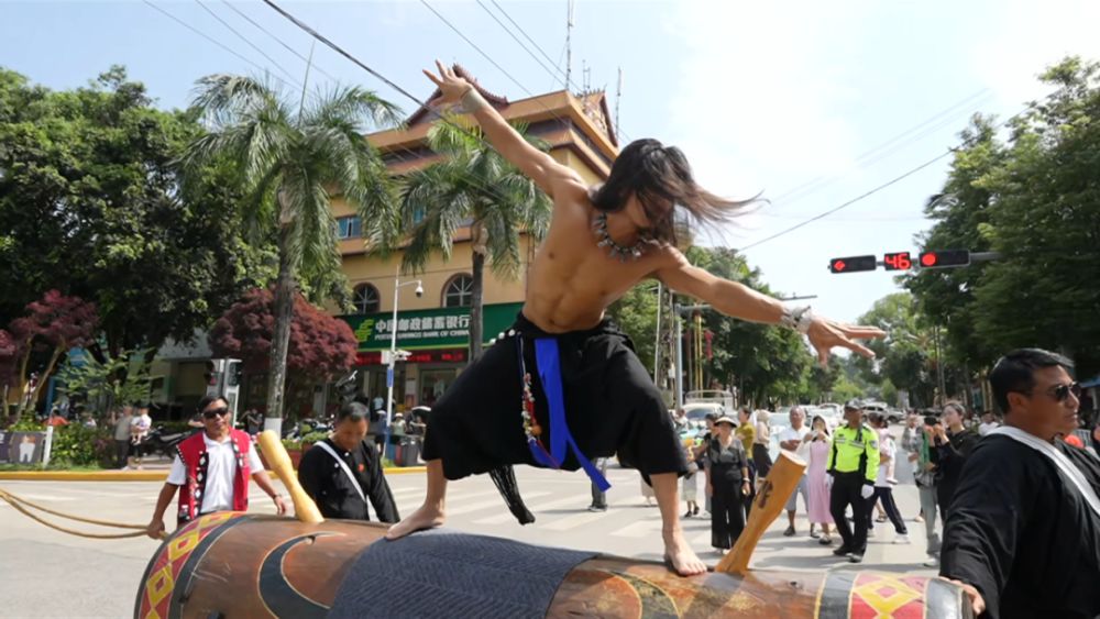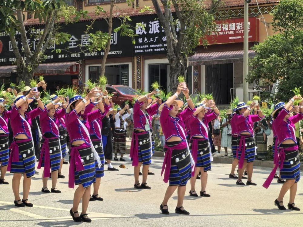 在拉木鼓的過(guò)程中,佤族原生態(tài)歌舞及民族代表方陣的表演穿插其中,為整個(gè)活動(dòng)增添了更多的色彩與活力。阿佤人敲響神圣的木鼓,姑娘們跳起熱情奔放的佤族舞蹈,傣家人敲起象腳鼓,拉枯族吹響歡快的蘆笙,不僅展現(xiàn)了少數(shù)民族文化的獨(dú)特魅力,更體現(xiàn)了民族團(tuán)結(jié)一家親的和諧景象。