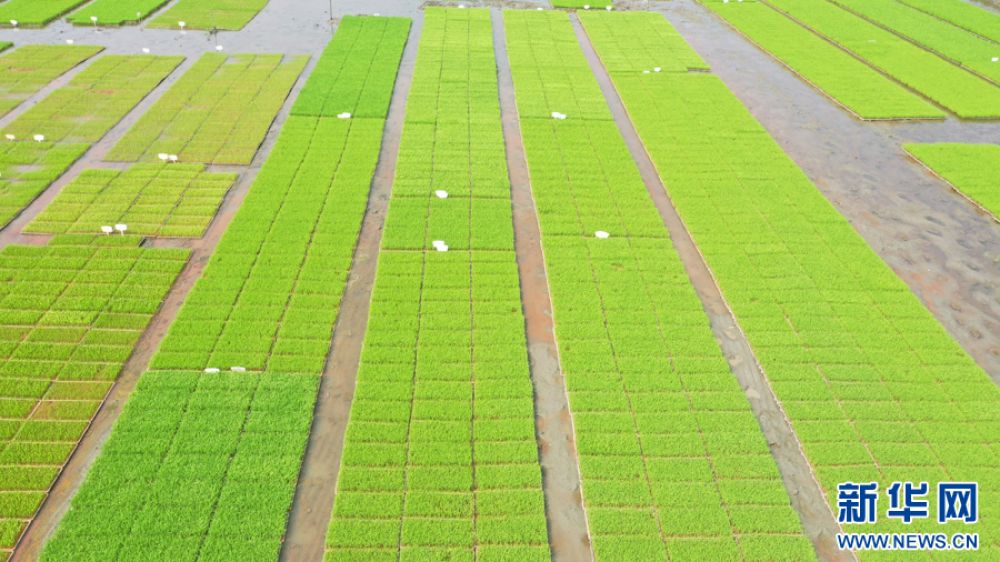 ??栽種好的秧苗(5月16日攝)。新華網(wǎng)發(fā)(李升寬 攝)