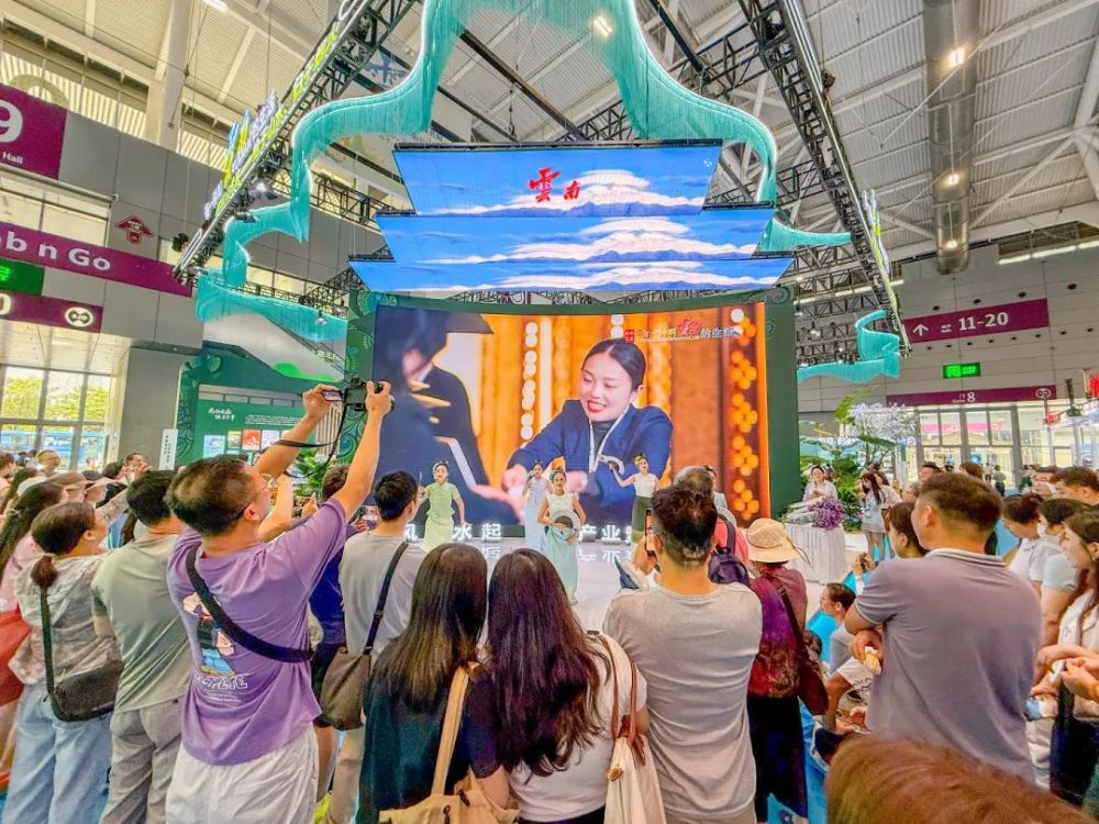 BGM一響,今年的深圳文博會云南展區(qū)瞬間開啟“人從眾”模式,《FUN傣》《哈尼寶貝》《山花》等民族歌舞展演輪番登場,現(xiàn)場觀眾能真真切切感受到七彩云南的民族風(fēng)情。憑借多元民族文化的獨特魅力,云南展區(qū)也再次成為展會焦點。