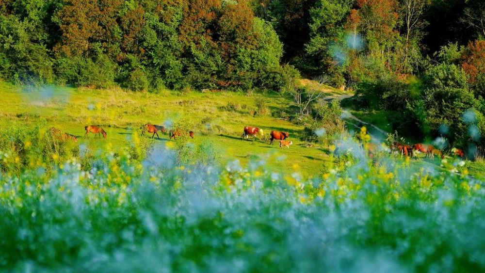 大片的草甸如打翻的翡翠盤子