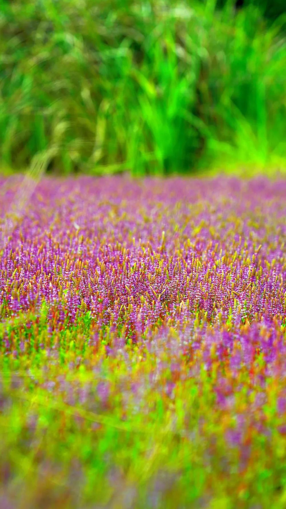 紫粉色的花密集地挺立在池里