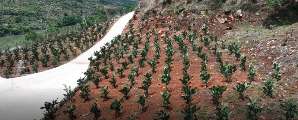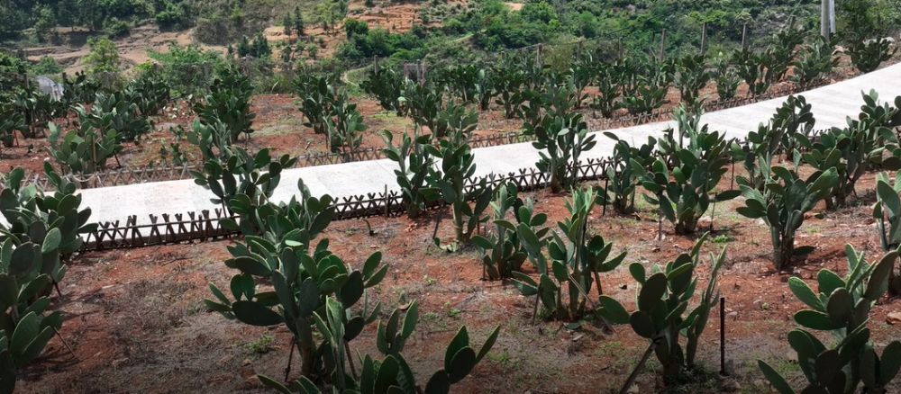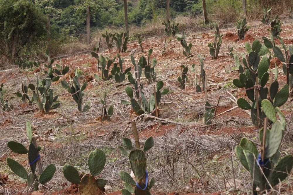 據(jù)了解,小德江村地處海拔1000—2000米的山區(qū),長期面臨土地荒漠化、資源利用率低等問題。2023年起,當?shù)匾胂扇苏品N植項目,利用其耐旱耐貧瘠、生態(tài)適應性強的特性,在荒山上開墾出500余畝種植基地。“仙人掌無需頻繁灌溉,春秋10天澆一次,冬季半月一次,沙質土壤正好適合生長,簡直是為荒山‘量身定制’的作物?!被刎撠熑私榻B,仙人掌根系發(fā)達可固土保水,減少水土流失,其每日6—8小時的光照需求在當?shù)氐靡猿浞譂M足,加上20—30°C的適宜溫度,形成了得天獨厚的種植條件。