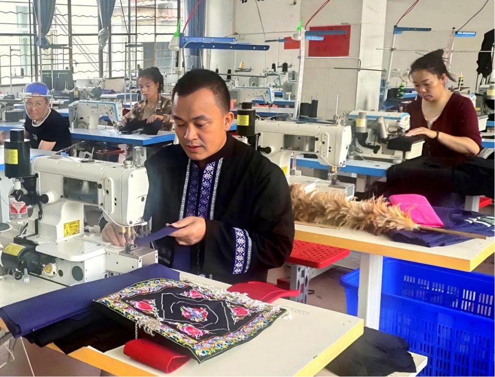 隨著越來(lái)越多的村民加入,他不斷創(chuàng)新車間培養(yǎng)機(jī)制,堅(jiān)持以“崗前培訓(xùn)+以工代訓(xùn)”為主,推行“保底+階梯計(jì)件”薪酬模式,邀請(qǐng)資深繡娘開(kāi)展民族刺繡、縫紉、服裝制作等理論+實(shí)操培訓(xùn),讓新入職員工7天內(nèi)掌握基礎(chǔ)縫紉技能,形成“培訓(xùn)即上崗、上崗即創(chuàng)收”的良性循環(huán)。同時(shí),在平常的車間培訓(xùn)中,曹澤能根據(jù)不同群體制定了不同的培訓(xùn)形式,針對(duì)中老年村民,主要以深耕傳統(tǒng)工藝細(xì)節(jié);針對(duì)年輕人,融入現(xiàn)代設(shè)計(jì)思維。 他通過(guò)線上宣傳與線下“傳幫帶”聯(lián)動(dòng),不僅帶活了就業(yè),更帶火了文化傳承。