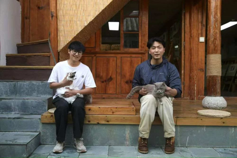 董彪(右一)、趙建富(左一)和他們的貓咪。