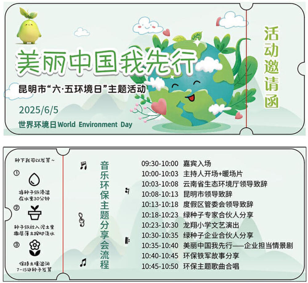 每年6月5日是世界環(huán)境日,每到這一天,各地的人們都會(huì)用心表達(dá)對(duì)于美好生活環(huán)境的向往和對(duì)生態(tài)環(huán)境保護(hù)的決心。今年昆明市的2025“六·五環(huán)境日”主題活動(dòng),將以音樂(lè)、藝術(shù)致敬環(huán)境保護(hù),在滇池綠道畔開(kāi)展一場(chǎng)音樂(lè)環(huán)保主題分享會(huì)。