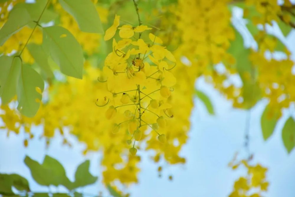 當(dāng)夏日的微風(fēng)輕拂 金鏈花便悄然綻放 為小鎮(zhèn)披上一襲 燦爛的金色盛裝