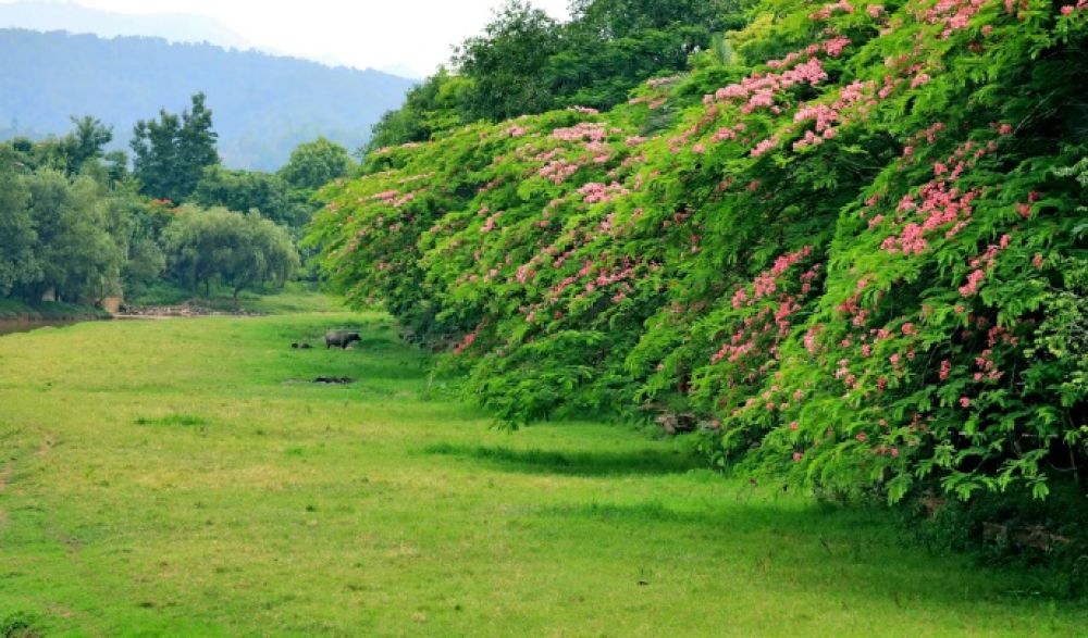夏日的孟連,南壘河綠意盎然。蔥郁的青草鋪滿河畔,絢爛的夏花點綴其間,牛羊悠然自得地踱步覓食。這幅生動的景象,完美詮釋了“青青河邊草”的意境,呈現(xiàn)出一派寧靜、和諧、安謐的夏日風(fēng)光。(孟連縣融媒體中心)