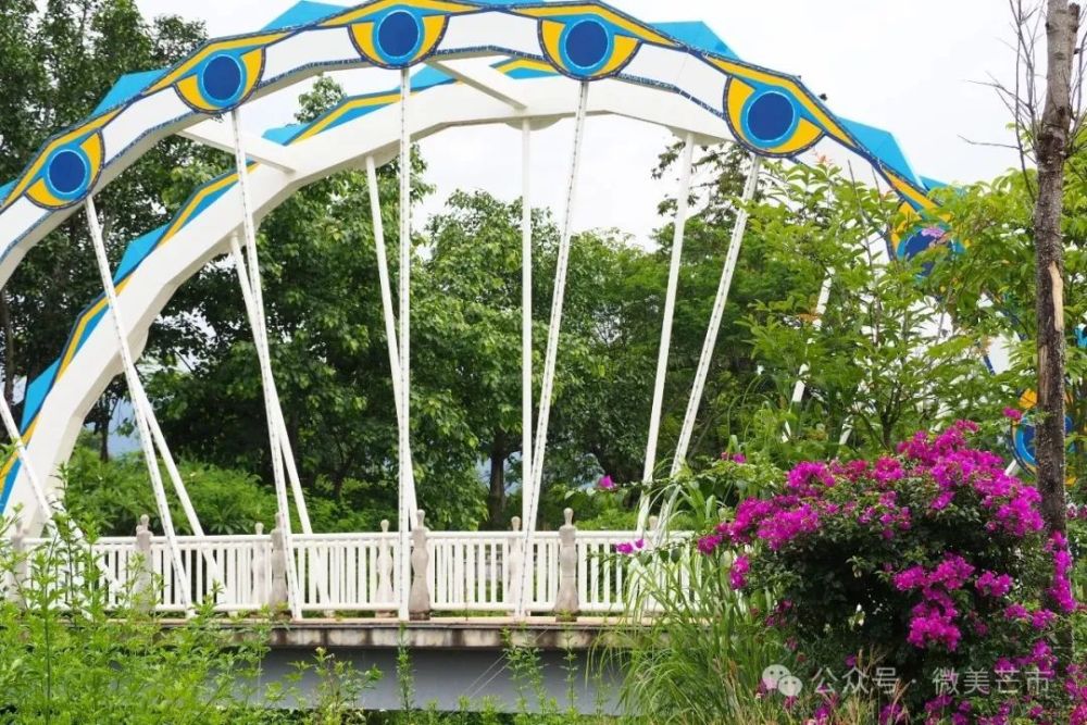 彩虹步道如綢帶蜿蜒其間,晨練者踏露而行,跑步者衣袂帶風,打太極的老者凝神如松,全民健身的脈搏在此怦然躍動。