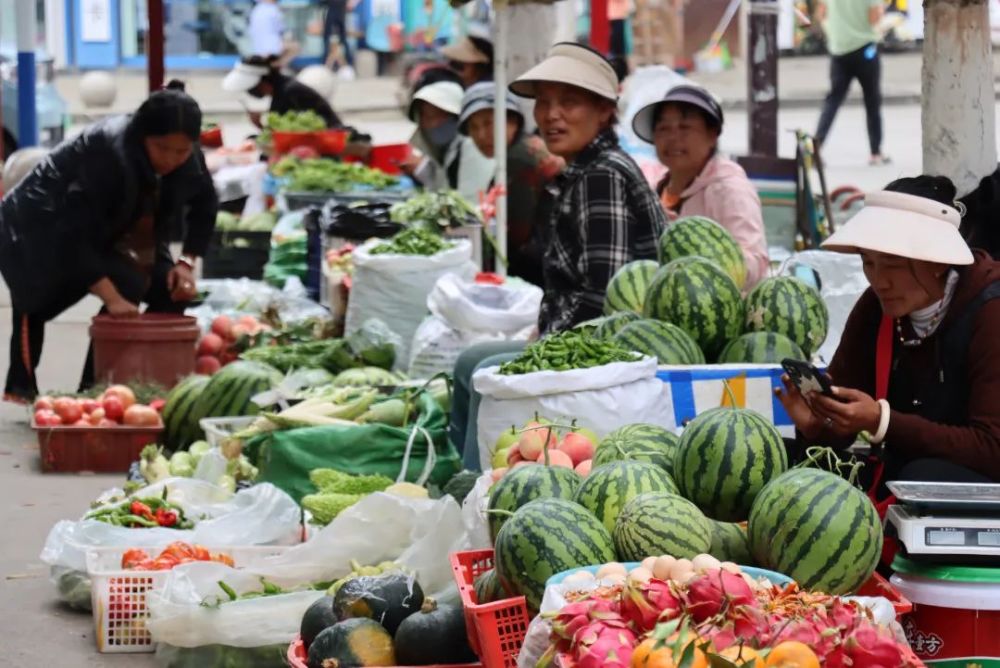 走進市場,高原的豐饒在此匯聚。壘成小山的西瓜、掛著晨露的青菜、青黃相間的仙人掌果……展示著當季蔬果的生機。帶著泥土清香的松茸、牛肝菌等特色林下珍饈堆疊如山;初加工的農(nóng)產(chǎn)品腌漬菜、傳統(tǒng)糕點及青稞熟粉、燕麥熟粉等雜糧制品不僅豐富了市場的品類,更顯著提升了產(chǎn)品附加值,增加了群眾的收入。標準化分裝和真空鎖鮮技術,讓蜂蜜、臘肉等農(nóng)副產(chǎn)品突破地域限制,流通更遠?!鞍昧四芗牡酵馐。项櫩投紣圪I!”攤主們自豪的話語道出了農(nóng)產(chǎn)品正從粗放式向精細化悄然轉身。