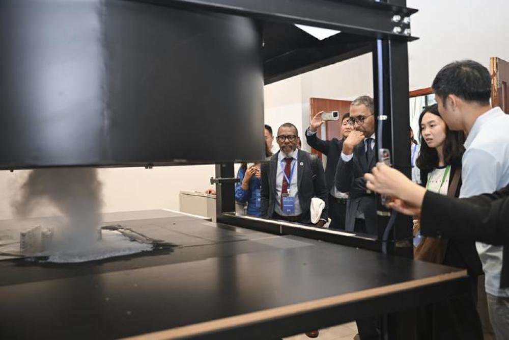 2025年6月23日,聯(lián)合國(guó)開(kāi)發(fā)計(jì)劃署駐華代表處和同濟(jì)大學(xué)正式宣布啟動(dòng)“聯(lián)合國(guó)開(kāi)發(fā)計(jì)劃署-同濟(jì)大學(xué)城市防災(zāi)韌性創(chuàng)新實(shí)驗(yàn)室(RISE Lab)”。該實(shí)驗(yàn)室聚焦推進(jìn)全生命周期智能防災(zāi)減災(zāi),以及超大型城市韌性基礎(chǔ)設(shè)施建設(shè),為城市防災(zāi)減災(zāi)提供智慧支持。這是與會(huì)嘉賓在參觀同濟(jì)大學(xué)土木工程防災(zāi)減災(zāi)全國(guó)重點(diǎn)實(shí)驗(yàn)室。