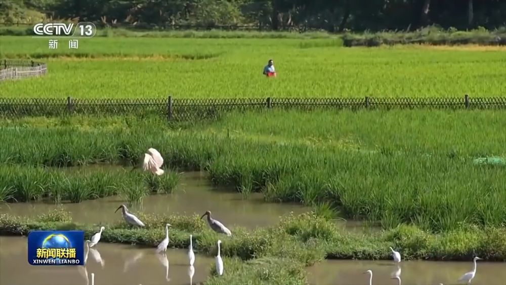 湖南邵陽崀山腳下,稻農(nóng)們在稻田里為朱鹮留下這樣的覓食空間,并嚴格控制農(nóng)藥化肥。留住了朱鹮的稻田,生長出的稻米更受歡迎。