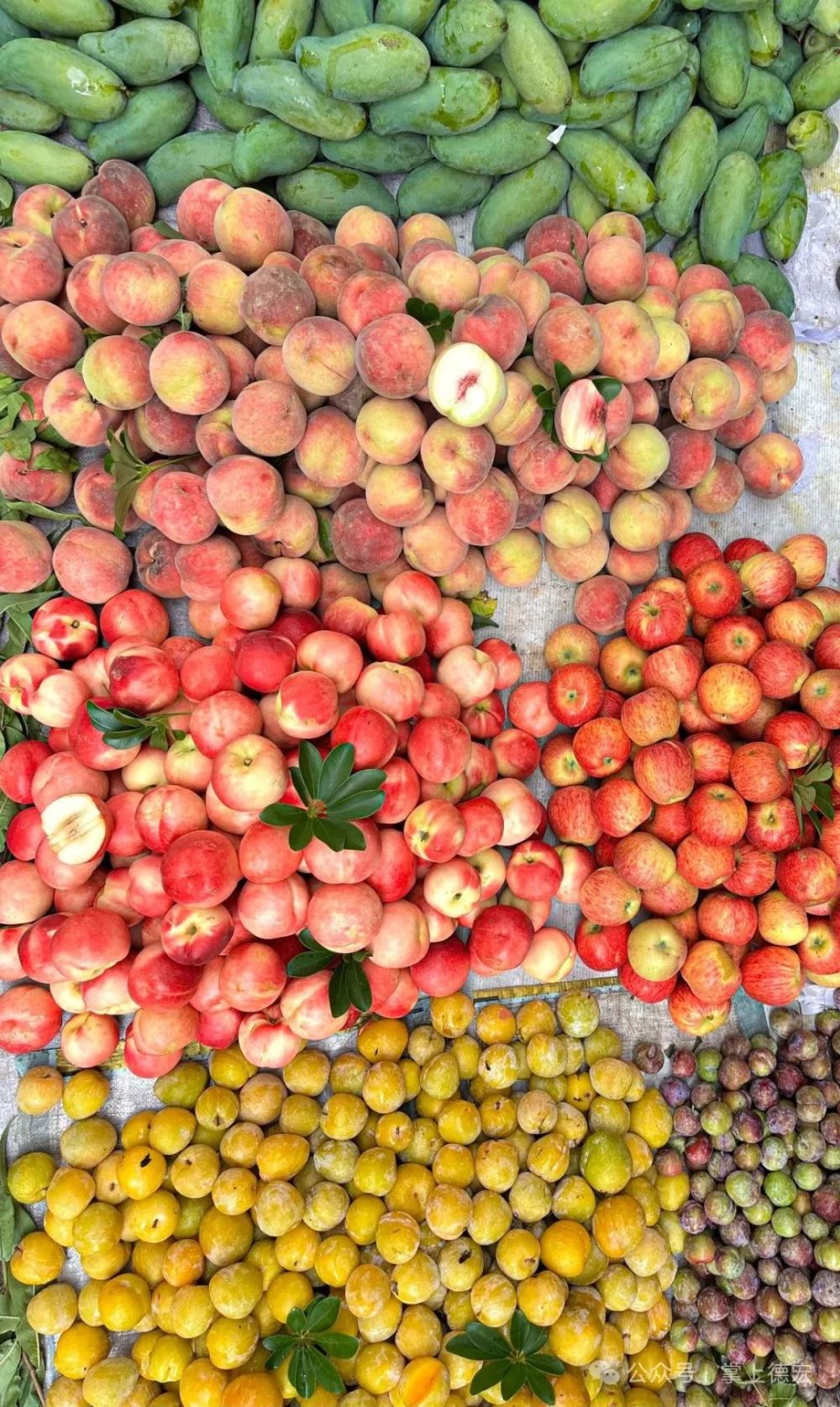 攤位挨挨擠擠,瓜果飄香
