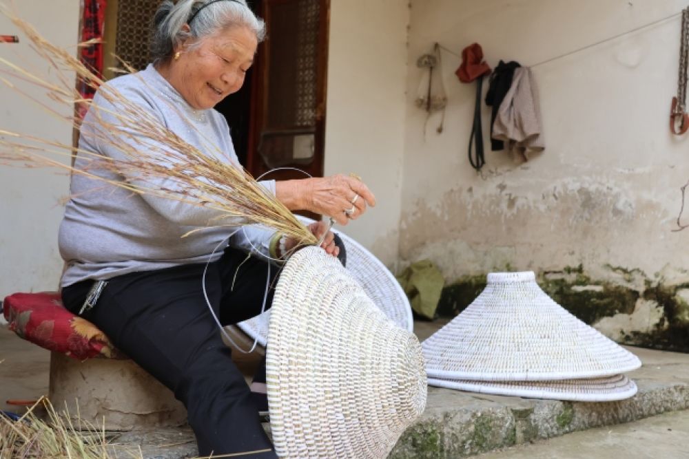 午飯過后,陸良縣板橋鎮(zhèn)小堡子村72歲的孫竹仙老人和往常一樣坐在屋檐下,熟練地編起了草鍋蓋。只見她手指翻飛,曬干的稻草在指尖反復折繞交織固定,手中的鍋蓋輪廓逐漸變得完整。“小時候,我就學會了打席子賣錢,十五六歲的時候為了生活,又跟著村里的人學會了編鍋蓋”。孫竹仙老人簡單地說著過往,指尖日復一日磨起的老繭卻泛著微光。