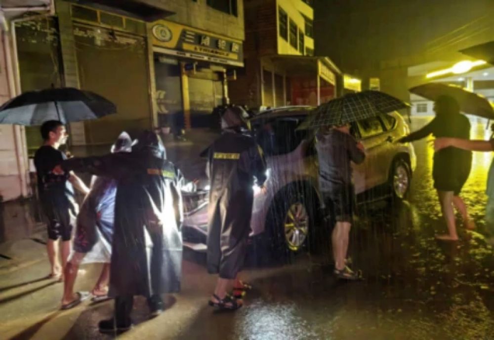 硯山縣阿猛鎮(zhèn),基層干部幫群眾轉移車輛。云南省委網絡安全和信息化委員會辦公室供圖