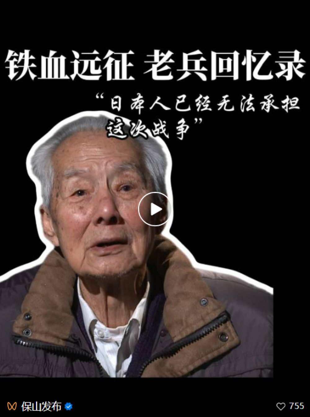 今年是中國人民抗日戰(zhàn)爭暨世界反法西斯戰(zhàn)爭勝利80周年,保山市融媒體中心以滇西抗戰(zhàn)口述歷史資料為基礎(chǔ),7月22日起推出《鐵血遠征·老兵回憶錄》專欄,共同銘記歷史,緬懷先烈,傳承和弘揚偉大的抗戰(zhàn)精神。
