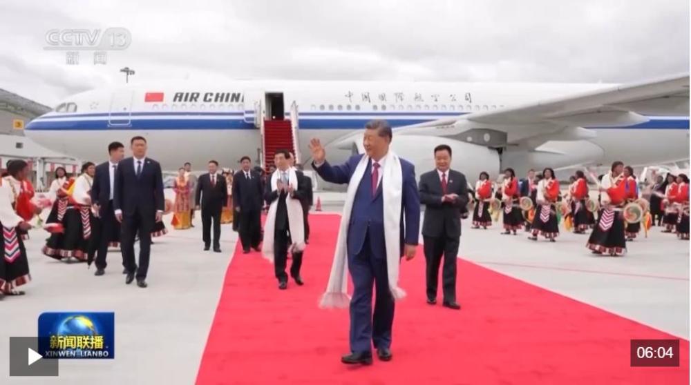 △視頻:習(xí)近平率中央代表團(tuán)抵達(dá)拉薩出席西藏自治區(qū)成立60周年慶?;顒?dòng)