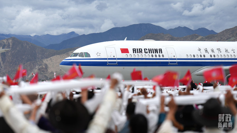 拉薩貢嘎機(jī)場紅旗飄揚(yáng),鼓樂喧天,氣氛熱烈。20日中午,總書記乘坐的專機(jī)在貢嘎機(jī)場降落,等候在停機(jī)坪的西藏各族各界群眾熱烈歡呼。