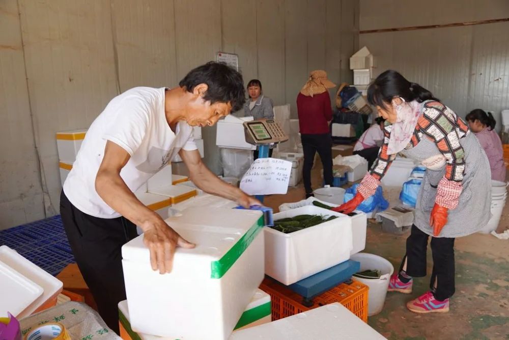 豐收的背后,是當(dāng)?shù)卮迕駛兠β档纳碛??;貜陌嗽鲁蹰_始采摘,采摘時間近50天。在政府“點對點”專車接送保障下,高峰期用工每天達(dá)200人,帶動了周邊村民實現(xiàn)家門口增收。在包裝現(xiàn)場,村民秦應(yīng)勇正利落地給黃瓜進(jìn)行打包,他告訴記者:“我來這里做活已經(jīng)一個星期了,從事的工作是打包、封箱、平均每天的收入是100元,如果加班的話在110-120元左右,離家近比出去打工劃算多了?!?/span>