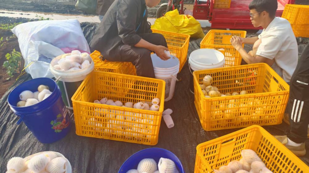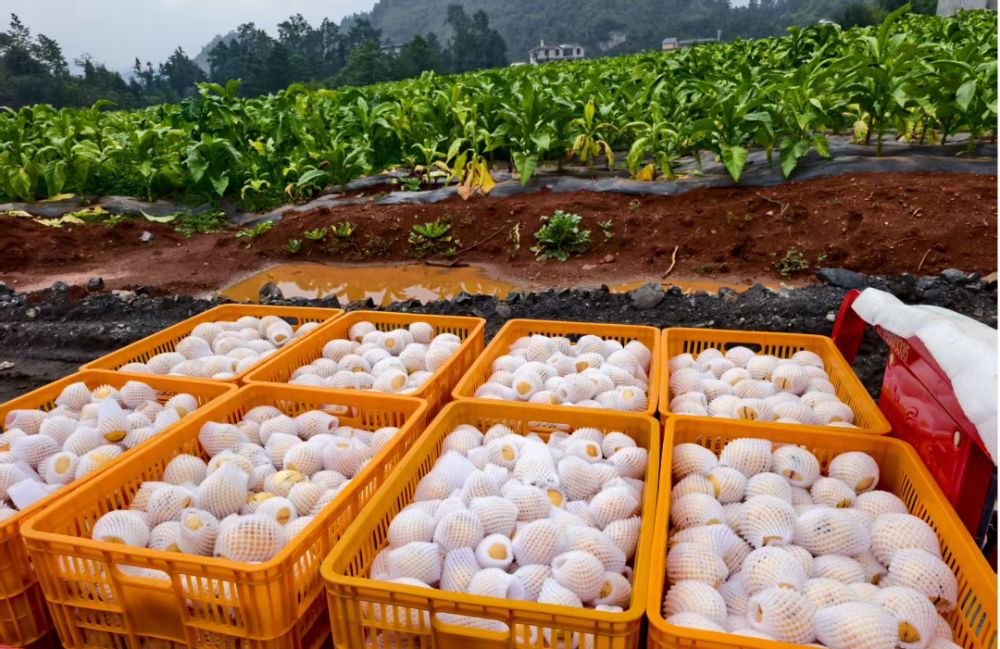 必米村黨總支書記、鎮(zhèn)人大代表劉文芳介紹:“現(xiàn)在市場行情很好,主要發(fā)往外省,當(dāng)天采摘分揀后,次日裝車發(fā)貨。按規(guī)格定價:大果8元/公斤、中果5元/公斤、小果2元/公斤。種植人參果,不僅僅是想讓自己增收致富,更想帶動各村(組)群眾一起致富,從開溝、種植、施肥、點花、采摘、分揀,每一個環(huán)節(jié),砂鍋寨、小必米等村(組)群眾都會來務(wù)工,工錢120元一天日結(jié),帶動村民就近就業(yè)3000余人次。”