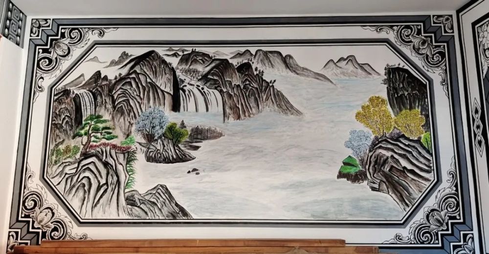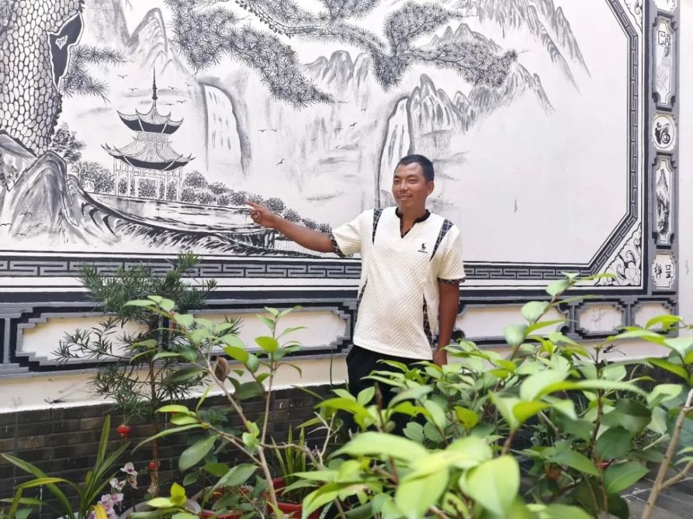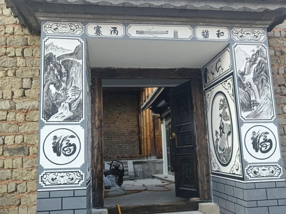 在梁河縣河西鄉(xiāng)邦讀村,王格仁的名字總與墻上的墨色山水連在一起。這片鄉(xiāng)土上,磚木結(jié)構(gòu)的老房子隨處可見,梁架間的木色與墻面上的水墨相映成趣,是刻在鄉(xiāng)親們骨子里的審美。而王格仁,便是將這份審美暈染得愈發(fā)鮮活的人——從兒時(shí)癡望墻畫的懵懂孩童,到執(zhí)筆二十五載的丹青妙手,再到讓水墨注入新韻的創(chuàng)新者,他未接受過系統(tǒng)培訓(xùn),全憑熱愛與天賦,將對(duì)水墨的摯愛浸進(jìn)歲月的肌理之中。