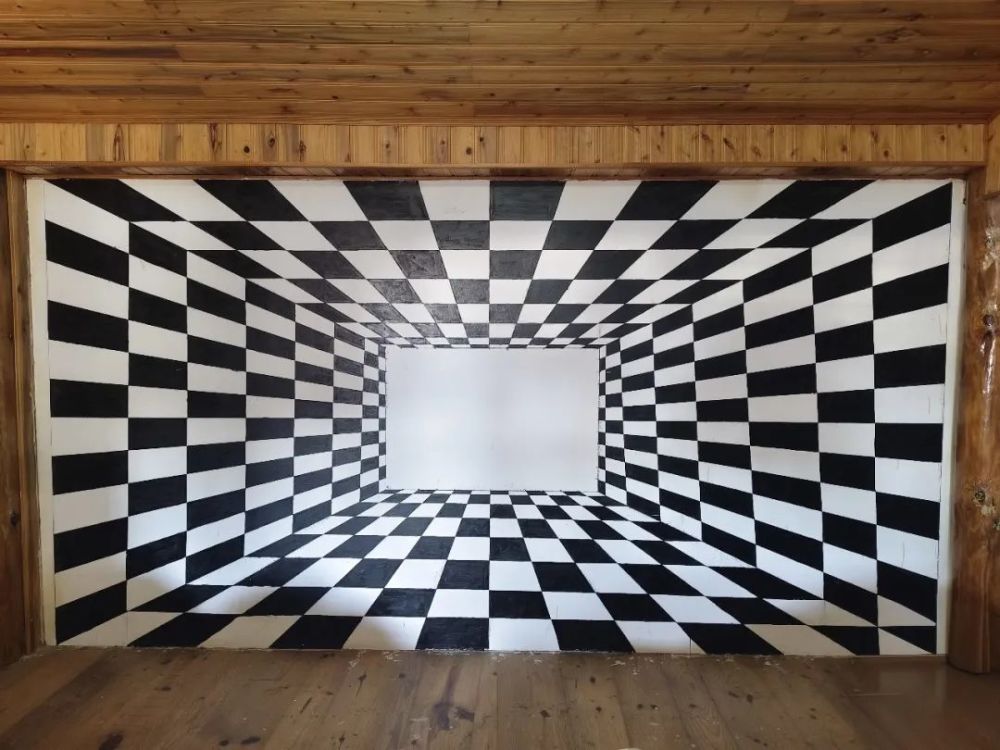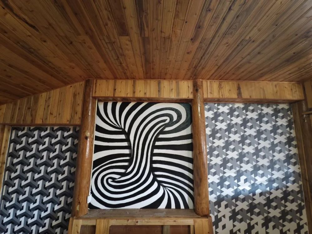 這些年,村里蓋洋房的多了,磚木老房漸漸少了。更讓他心里發(fā)沉的是,年輕人不愛看水墨了,覺得“老氣”。琢磨了好些日子,他覺得畫得變,但水墨的根不能變。聽聞年輕人喜愛新奇視覺效果,他開始鉆研水墨3D立體畫法——依然使用傳統(tǒng)墨汁,卻巧妙利用光影變化和特殊筆觸,在平面上營(yíng)造出深邃空間感?;蛄罹€條如漩渦般律動(dòng),或借幾何圖形制造視覺“陷阱”,平面的墨色陡然生出奇妙的張力,引得年輕人好奇追問他訣竅。王格仁總是笑著解釋:“傳統(tǒng)水墨仍是根基,只是跟著你們愛看的模樣,換了種畫法?!?/span>