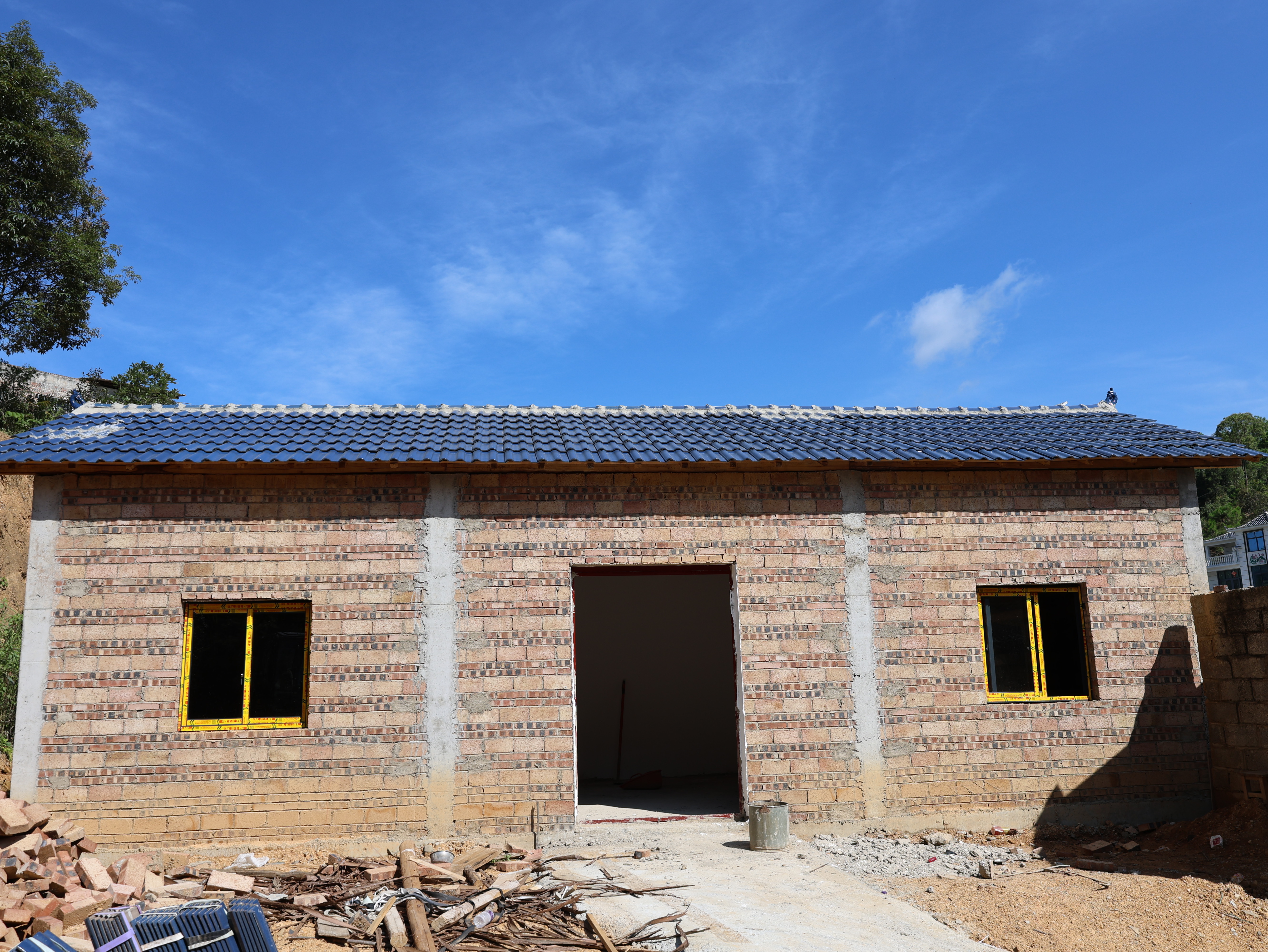 并網(wǎng)后產生的收益將作為集體經(jīng)濟,用于村里的公共設施建設、文化活動舉辦等方面,成為了村集體經(jīng)濟的“新引擎”。舍舍村委會小糯村的馬洪旗就是光伏項目的收益群眾之一。他介紹,此前,由于房屋修建時間已久,出現(xiàn)瓦片脫落、墻體傾斜等不安全因素,今年6月,在得到了村集體經(jīng)濟收益1萬余元,以及危房改造款、防貧保險等3萬余元的資金扶持下,如今,他家新建的40平米磚房已初見雛形。