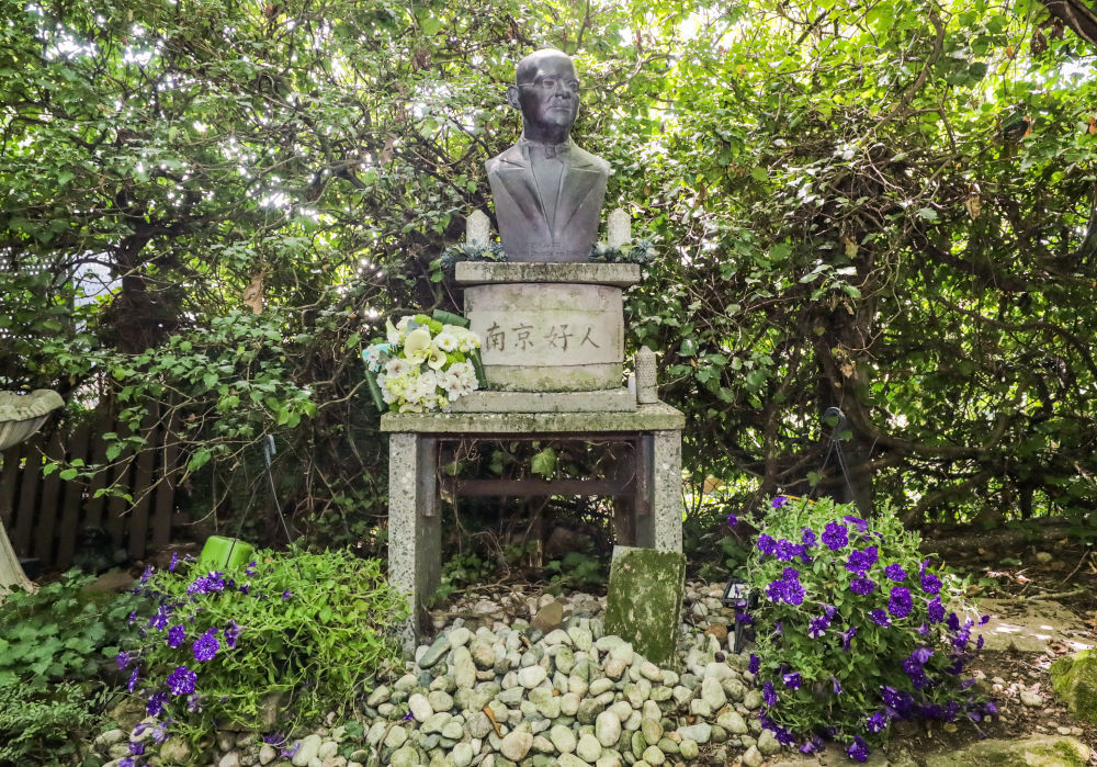 1950年,拉貝逝世,被安葬在柏林西郊。墓碑周圍是從南京移栽而來的竹子、梅花和菊花。基座前鋪有雨花石。墓碑前方矗立著拉貝半身雕像,其下立有紀念碑,用中德雙語鐫刻著:“感恩——永遠銘記拉貝先生的國際人道主義善舉!中國·南京?!蹦骨皵[放著憑吊者送上的簇簇鮮花。