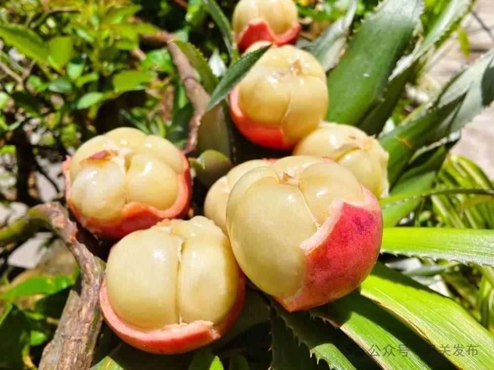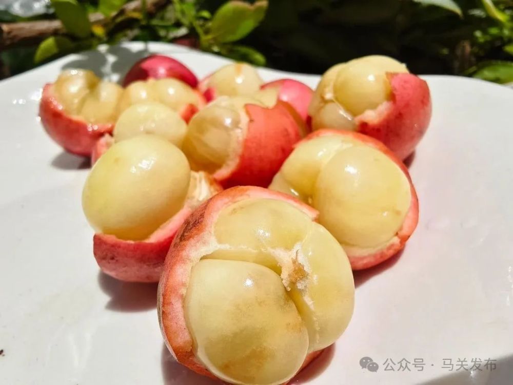“米湯果”又名三丫果、木奶果、江邊果、木來果,是一種天然野生的綠色食材,汁多味甜,富含氨基酸和維生素。成熟的果實多呈紫紅色,也有淡黃色、淡白色等品種;果肉分為三瓣,白色瓣狀果肉整齊排列,晶瑩剔透如凝脂。摘下一顆剝開,酸甜滋味在舌尖綻放,飽滿的汁水裹挾著馥郁果香,柔嫩果肉入口即化,余味悠長。
