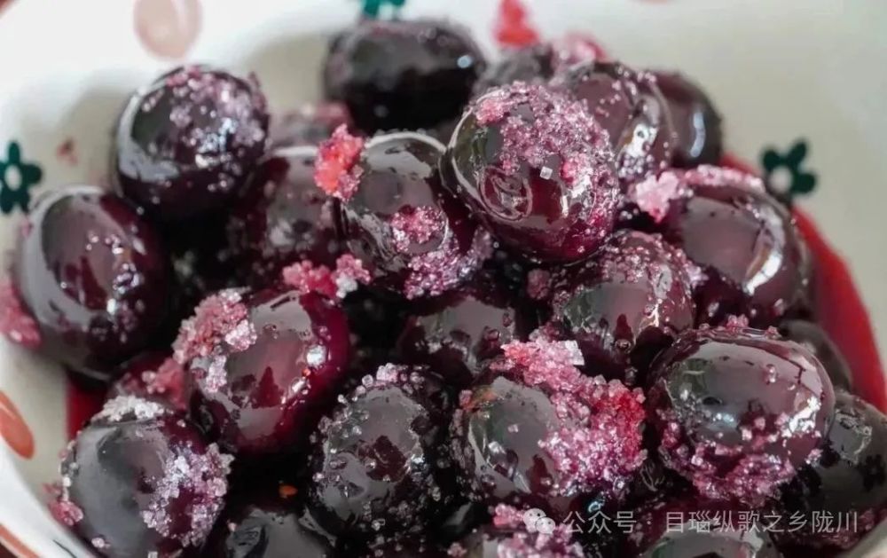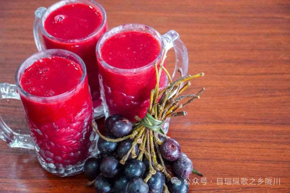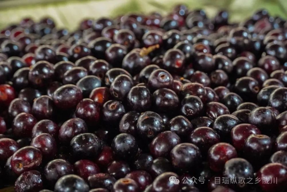別看胭脂果個(gè)頭不大,來頭可不小。它是藏在山林里的野生寶貝,學(xué)名叫“粗梗稠李”,還有個(gè)接地氣的俗稱 “鬼眼睛果”。每年八九月一到,熟透的果子就裹著紫黑外衣掛滿枝頭,薄薄的果肉里藏著恰到好處的酸甜,一口下去清爽解膩,難怪能牢牢鎖住隴川人的胃。