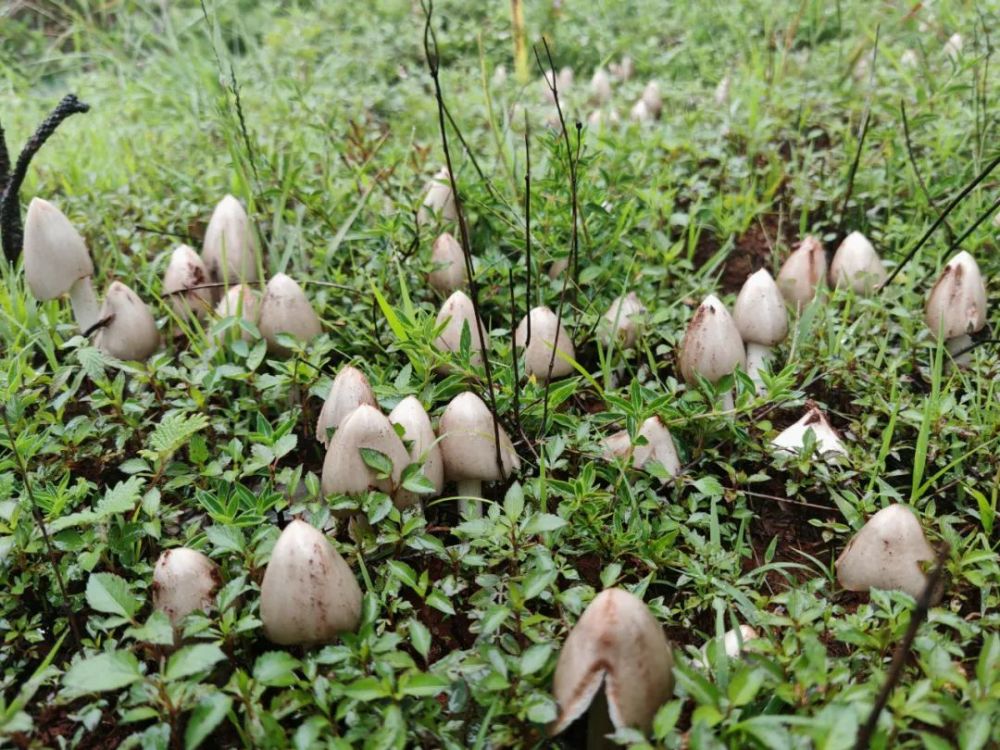大家在成片長出的雞樅菌旁