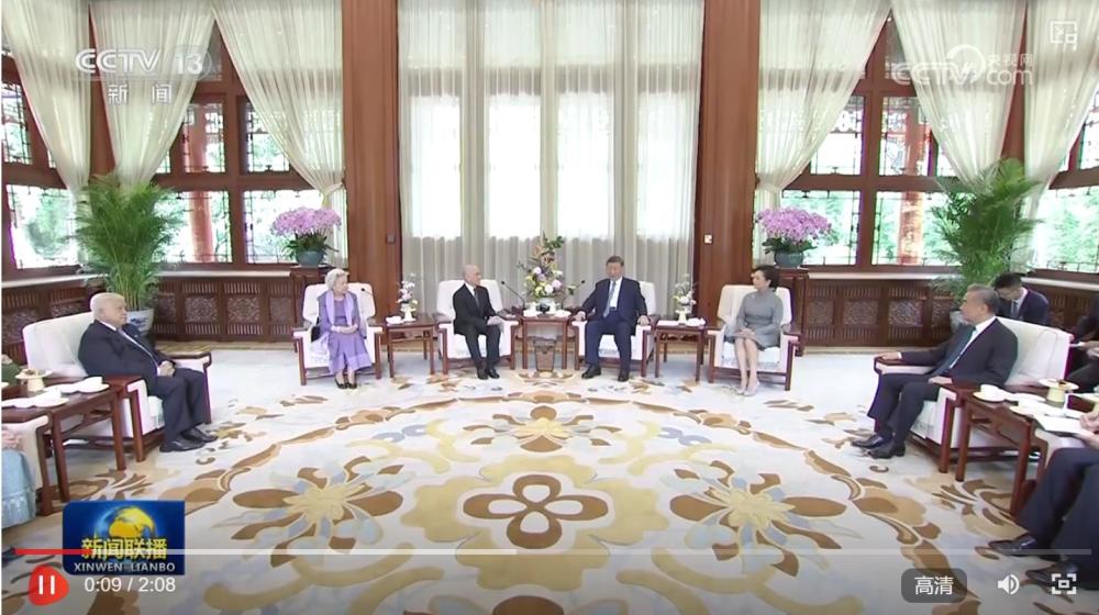 8月26日上午,國家主席習(xí)近平和夫人彭麗媛在北京中南海親切會見柬埔寨國王西哈莫尼和太后莫尼列。