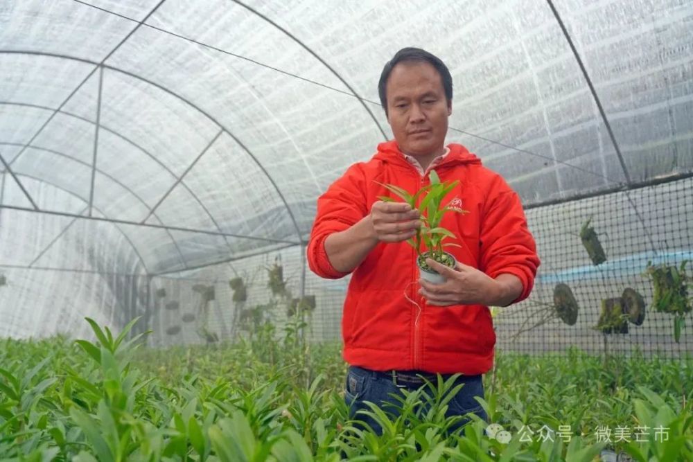 鄉(xiāng)黨委引進企業(yè)后,楊榮成在自家的院子和樓頂與企業(yè)合作種植了觀賞石斛2500盆左右,每年收益的管理費約1萬元。除此之外,他還自己種植了500盆觀賞石斛?!罢R粓鲋辈ヒ灿袔装賶K錢的毛收入,這兩年孩子也小,老人也老,做直播不僅可以賣花卉,還可以賣農(nóng)副產(chǎn)品?!睏顦s成對記者說。
