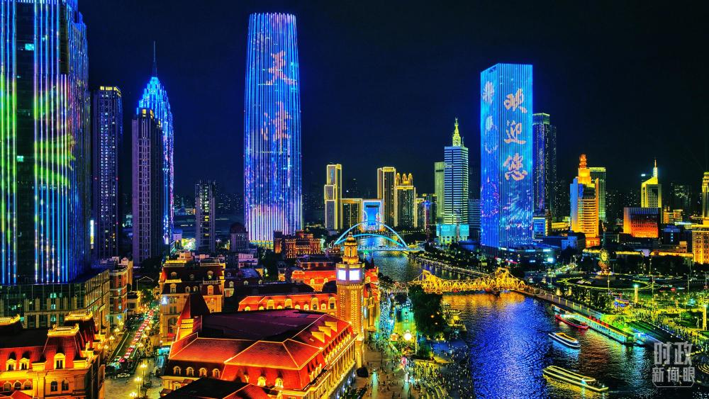 △天津海河上合峰會主題燈光秀。(視覺中國)