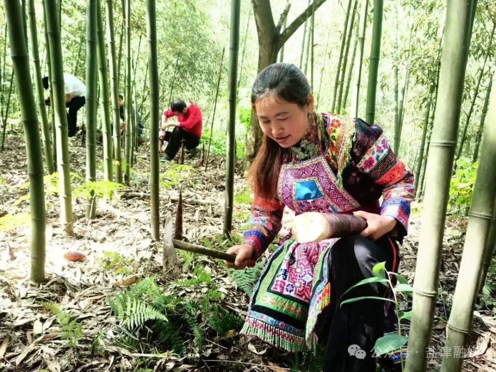 層巒疊嶂間,百萬畝竹海如碧玉般托起鹽津的生態(tài)脊梁。山風(fēng)拂過,修竹搖曳如萬頃波濤,沙沙竹韻與泠泠水聲相和,織就一幅動人的生態(tài)長卷。在興隆鄉(xiāng)大坪村500畝雷竹基地,村民楊興芝的斗笠上灑滿晨光,她彎腰采筍的動作十分嫻熟,竹筐里的鮮筍很快堆成小山?!懊刻炷懿甚r筍200多斤,這一季的收入頂?shù)蒙习肽甑氖杖?。”楊興芝直起身擦汗,臉上洋溢著幸福的笑容。