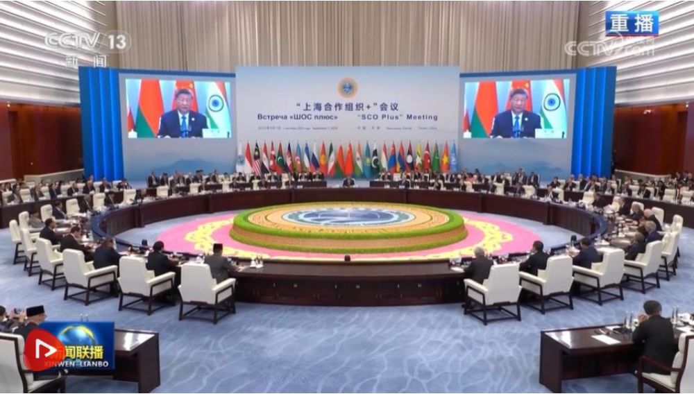 9月1日下午,“上海合作組織+”會議在天津梅江會展中心舉行。國家主席習(xí)近平主持會議并發(fā)表題為《凝聚上合力量 完善全球治理》的重要講話。