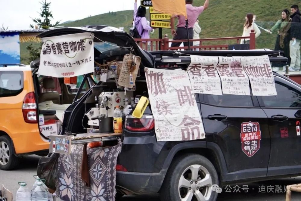 出攤之余,范興香還堅持直播,她的直播間成了不少人的“云驛站”:網(wǎng)友跟著她的鏡頭看日照金山、星空銀河,偶爾還能偶遇巖羊覓食。線下的咖啡攤更是個“信息集散地”:有人在這里找到拼車旅伴,有人收到陌生人贈予的抗高反藥物,有人領(lǐng)取到實用的旅游攻略。她還設(shè)計了多款特色車貼,送給來打卡的粉絲。如今,這些車貼在G214線上隨處可見,成了驢友間的暗號。