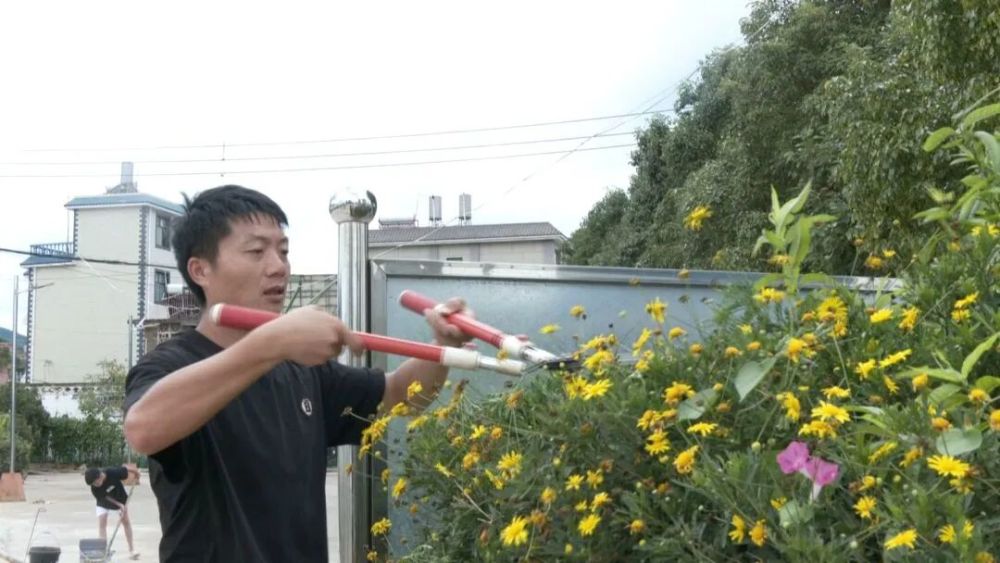 在牛欄江鎮(zhèn)下馬坊村委會白龍橋村“10+25”鄉(xiāng)村振興村建設(shè)項目現(xiàn)場,村民們正在對道路路面上的淤泥、道路兩側(cè)的雜草進行清理。