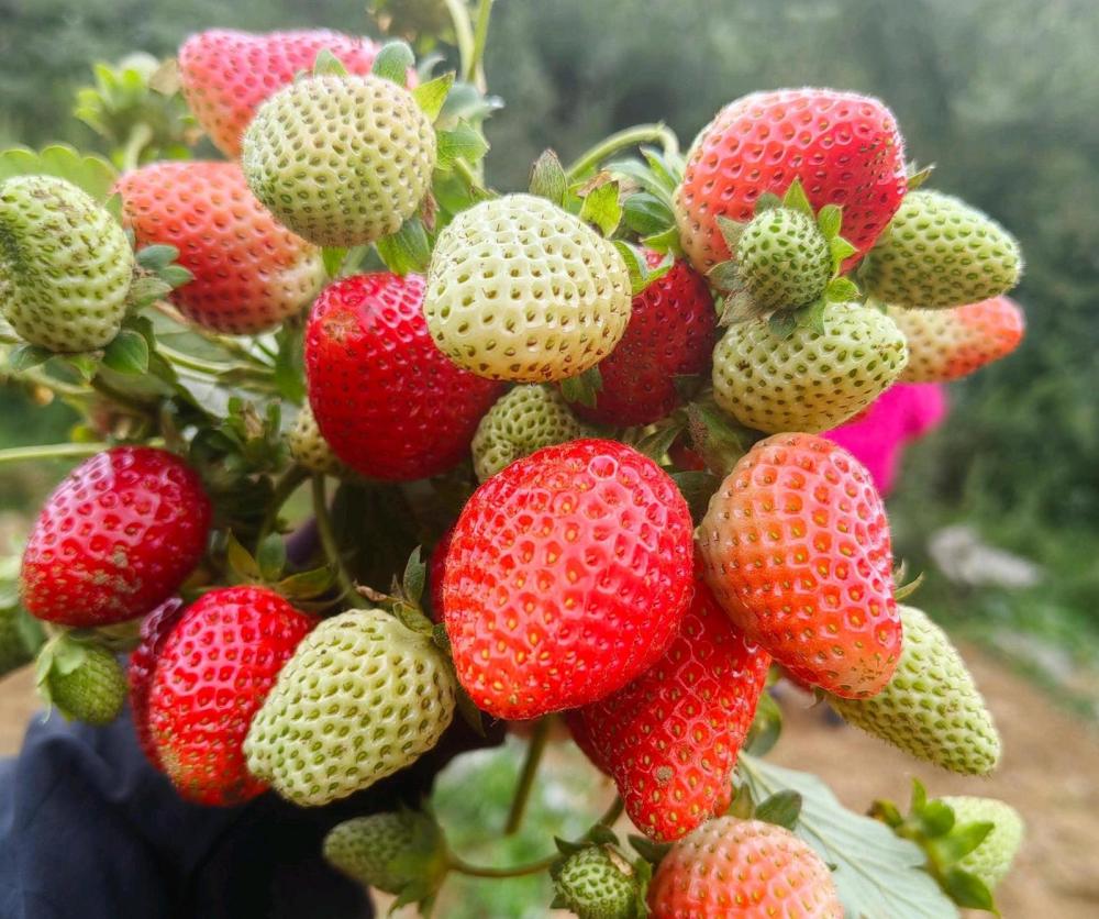 經(jīng)過精心培育,試驗田草莓種植成效顯著,目前種植的20畝草莓,一年可分三季采收,分別在5月、9月、12月迎來豐收,畝產(chǎn)可達(dá)1萬斤,草莓均價穩(wěn)定在每斤11元左右,產(chǎn)業(yè)效益持續(xù)凸顯。產(chǎn)業(yè)發(fā)展的同時,涼山村黨支部始終把帶動群眾增收放在首位。圍繞草莓種植全流程,從壘土、鋪膜、育苗,到日常拔草、剪枝,再到豐收季采摘,累計帶動200余名當(dāng)?shù)厝罕妼崿F(xiàn)家門口務(wù)工。村民無需遠(yuǎn)離家鄉(xiāng),就能通過辛勤勞動獲得穩(wěn)定收入,既解決了農(nóng)村剩余勞動力就業(yè)問題,又為鄉(xiāng)村振興注入了強勁動力。