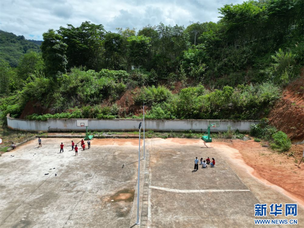 航拍關(guān)坪小學(xué)防象墻(6月26日攝)。新華網(wǎng)發(fā)