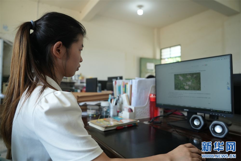 丁雪正在查詢亞洲象相關(guān)資料(6月26日攝)。新華網(wǎng)發(fā)